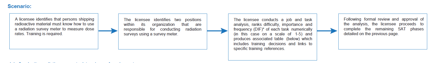 The systematic approach to training (SAT) is a proven and highly successful education and training methodology, which licensees may adopt to meet the requirements in section 3 of this regulatory document. SAT is also widely known as the instructional systems design model (ISDM) or analysis, design, development, implementation and evaluation (ADDIE) model.