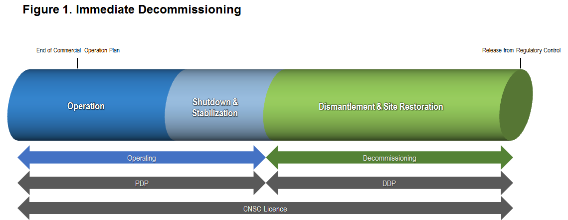 For an existing reactor transitioning from an operational state to a decommissioned state, an EA under the NSCA would be conducted. The EA under the NSCA would assess the impacts of all the planned licensed activities and would be commensurate with the potential risks of those activities. An EA under the NSCA is carried out at every phase throughout the lifecycle of a facility. At each phase (i.e., for each licence application), CNSC staff consider all future phases of the lifecycle, taking into consideration available information.